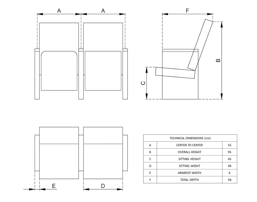 This conference seat features a flip-up seat base, allowing for easy cleaning and space-saving configurations. Its metal frame and flame-retardant upholstery ensure durability and compliance with safety standards.
